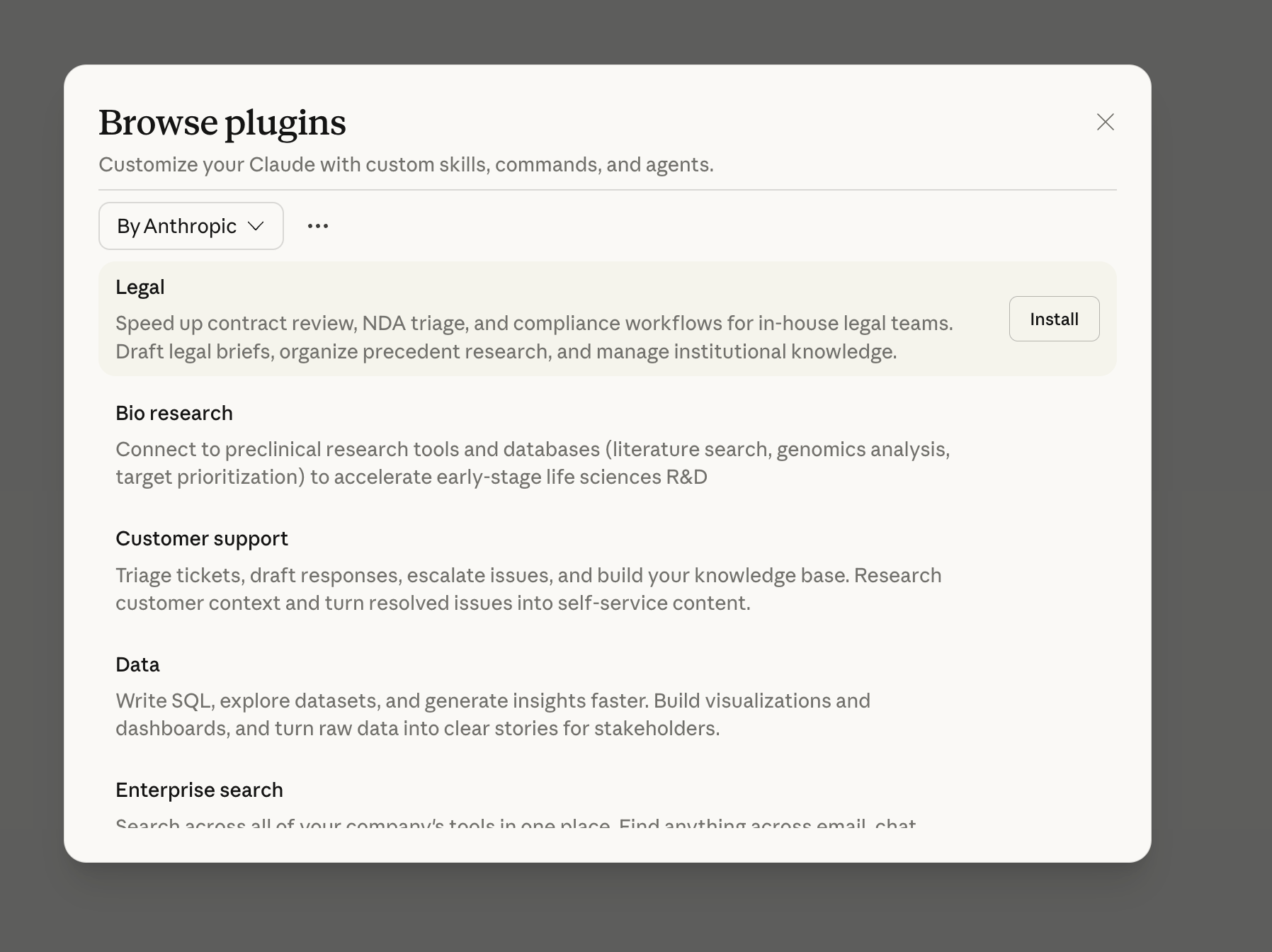 These plugins led to the anxiety in the market that we saw. For example, one of the plugins is around legal workflows. It can be used for contract review, NDA triage, etc.