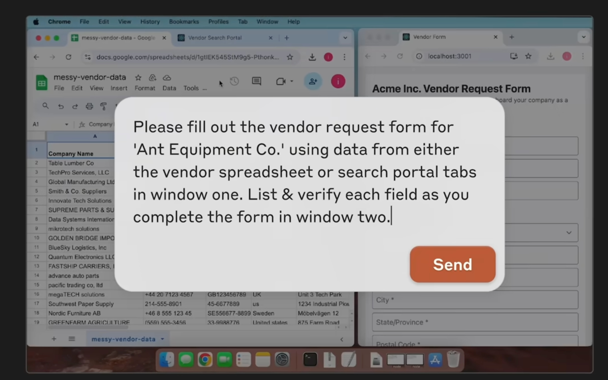 Below is an example of computer use tool for filling vendor request form. To most people including me, this looks similar to Cowork in terms of functionality.